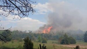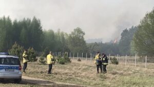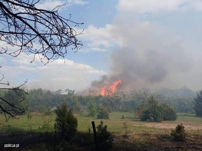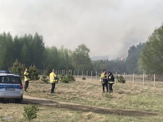 W czwartek, 12 maja br. przed godz. 13.00 dyżurny Państwowej Straży Pożarnej (PSP) w Grójcu w woj. mazowieckim otrzymał zgłoszenie o pożarze lasu na terenie gminy Nowe Miasto nad Pilicą w okolicy miejscowości Prosna. Początkowo pożarem objęte było kilka hektarów lasu. Niestety silny wiatr oraz wysuszone poszycie leśne spowodowały szybki rozwój pożaru, który oszacowano na blisko 100 hektarów. Na miejscu policjanci zabezpieczali teren. Ogień zagrażał domom, ale strażacy walczyli, aby nie było konieczności ewakuacji ludzi.