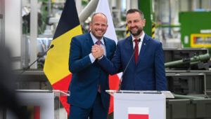 Jesteśmy w Mesko w Skarżysku Kamiennej, w polskich zakładach zbrojeniowych. Pan minister zmienia pozycję Belgii w dziedzinie uzbrojenia, w dziedzinie gotowości do działania. Widzę wielką dynamikę, ożywienie współpracy Belgii z Polską, ale też i ze wszystkimi sojusznikami. Widzę większą rolę Belgii na arenie NATO i Unii Europejskiej w dziedzinie obronności, w dziedzinie bezpieczeństwa – powiedział wicepremier Władysław Kosiniak-Kamysz po spotkaniu z szefem resortu obrony Belgii.