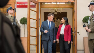 Jesteśmy sojusznikami. Współpraca polsko-kanadyjska ma wiele wymiarów. Przede wszystkim współpracujemy na wschodniej flance NATO. Wspieramy Ukrainę, zależy nam, żeby Ukraina była państwem niepodległym. Nam Polakom zależy nam tym, żebyśmy sąsiadowali z niepodległą Ukrainą a nie z Rosją. Doceniamy zaangażowanie kanadyjskie na wschodniej flance NATO. Nasi żołnierze, stacjonują na Łotwie, gdzie państwem ramowym jest Kanada. Uczestniczymy w ćwiczeniach kanadyjskich, a wojsko kanadyjskie uczestniczy w ćwiczeniach polskich. Wspólnie budujemy interoperacyjność pomiędzy naszymi siłami zbrojnymi – zaznaczył wicepremier i minister obrony narodowej Mariusz Błaszczak po spotkaniu z Anitą Anand, szefową resortu obrony Kanady.
