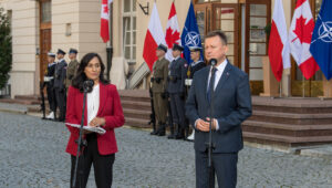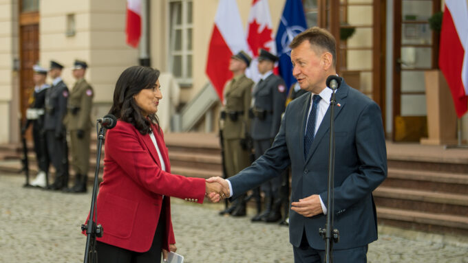 Ministrowie obrony Polski i Kanady, Mariusz Błaszczak i Anita Anand rozmawiali w Warszawie m.in. o kwestiach dotyczących modernizacji technicznej sił zbrojnych i współpracy zbrojeniowej