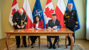 11 października br. z wizytą w Warszawie przebywała delegacja Ministerstwa Obrony Narodowej Kanady. Rozmowy ministrów obrony Polski i Kanady dotyczyły kwestii dwustronnych relacji wojskowych oraz współpracy w ramach NATO. Poruszone zostały tematy dotyczące wojny w Ukrainie, w tym wsparcia dla wojsk ukraińskich. Szefowie resortów obrony omówili także sytuację bezpieczeństwa oraz kwestie dotyczące modernizacji technicznej sił zbrojnych i współpracy zbrojeniowej.