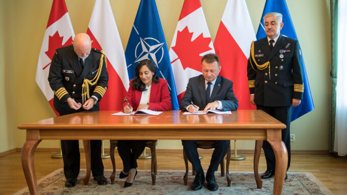 Podczas spotkania podpisano Memorandum o porozumieniu między Ministrem Obrony Narodowej Rzeczypospolitej Polskiej a Departamentem Obrony Narodowej Kanady o współpracy obronnej. Nasze zadania związane są ze wzmocnieniem Sojuszu Północnoatlantyckiego, w związku z tym Polska przeznaczy w przyszłym roku ponad 3 % PKB na obronność. Wzmacniamy także liczebnie polskie siły zbrojne i wyposażamy je w nowoczesną broń, żeby odstraszyć agresora. Innym ważnym elementem procesu odstraszania jest współpraca w ramach Sojuszu Północnoatlantyckiego, a dziś mamy okazję do zacieśnienia relacji polsko-kanadyjskich. Służy temu podpisane przed chwilą memorandum dotyczące współpracy szkoleniowej i współpracy technicznej. Razem jesteśmy silniejsi – zaznaczył wicepremier Mariusz Błaszczak.