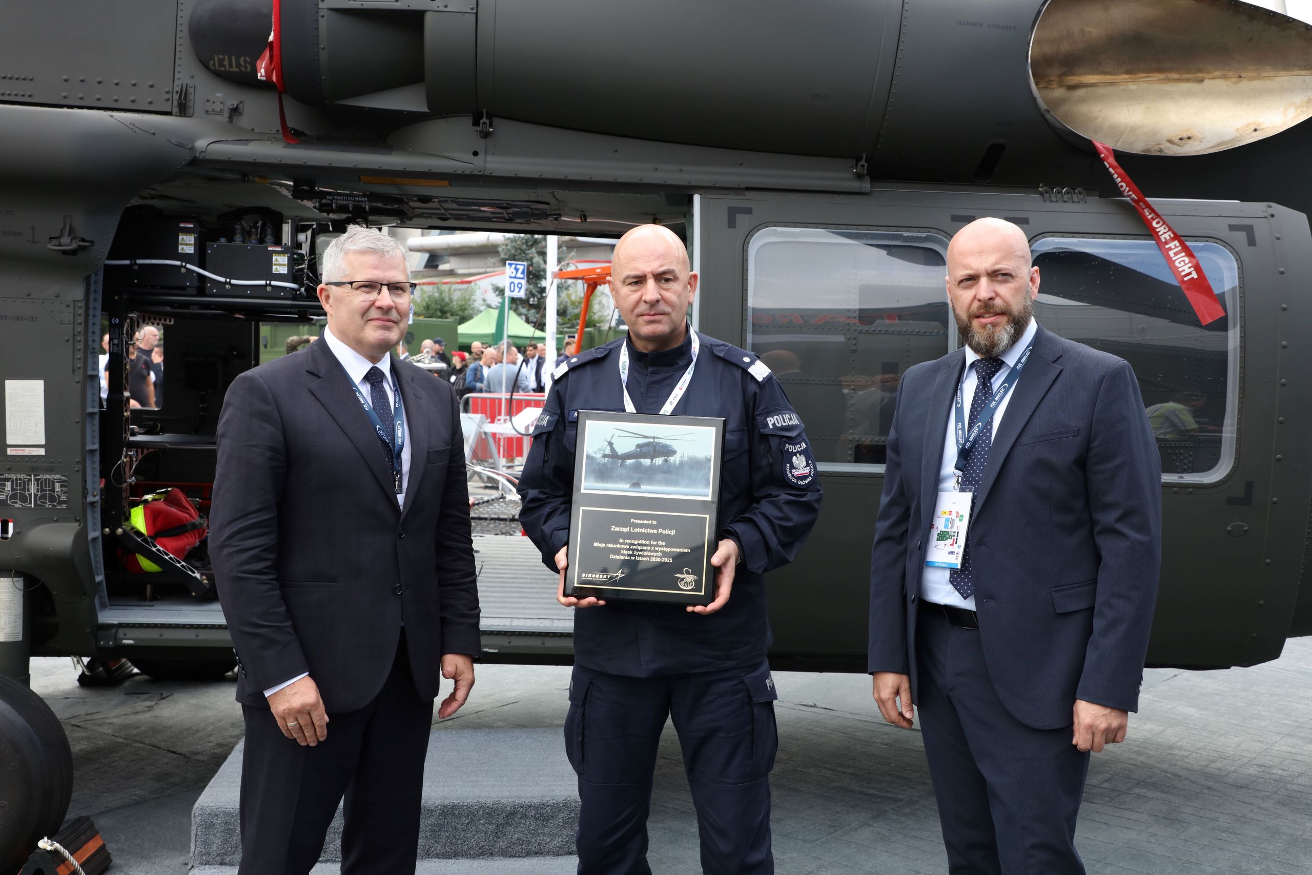 Ceremonia odbyła się na stoisku PZL Mielec na tle śmigłowca S-70i Black Hawk, który odgrywa kluczową rolę w misjach ratunkowych realizowanych przez polskie służby.