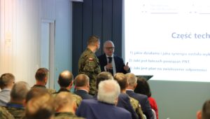 Projekt Polska Tarcza PNT to już sukces i efekt przyjętego eksperymentalnego modelu współpracy państwo (resorty)-nauka-przemysł, w mojej opinii mechanizm tego sukcesu, mechanizm tej współpracy może zostać jeszcze szerzej wykorzystany. Żołnierze, naukowcy i przemysł mogą bardzo efektywnie współpracować szukać sposobów aby zgodnie z prawidłami sztuki wojennej to, co początkowo było ograniczeniem systemowym, zostało przekształcone w źródło przewagi operacyjnej. Triada wzmacnia obronność, gdyż jest to wyzwanie dla całego państwa, które w ogólności winno walczyć efektywnie, walczyć mądrze a nie ciężko – wspomniał prof. Figurski.