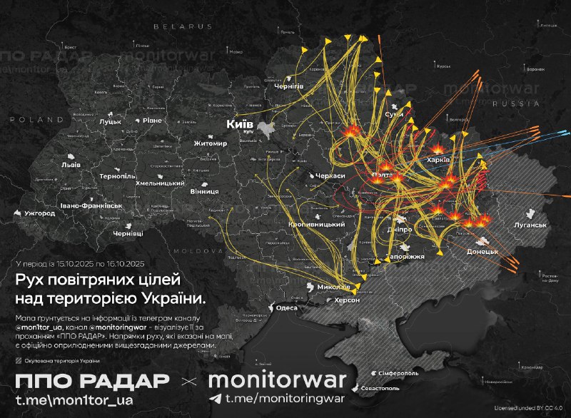 W czwartek, 16 października 2025, Sztab Generalny Sił Zbrojnych Ukrainy poinformował, że Rosja przeprowadziła kolejny atak lotniczo-rakietowy wystrzeliwując od wczoraj od godz. 20.00 czasu lokalnego 357 środków bojowych, w większości dronów, na pięć obwodów.
