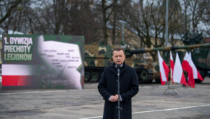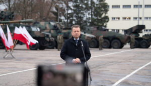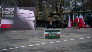 Dynamicznie przeprowadzamy proces tworzenia nowego związku taktycznego. Dywizja będzie wyposażona w nowoczesną broń. O ile 16. Dywizja Zmechanizowana, jeżeli chodzi o czołgi, przede wszystkim wyposażona będzie w czołgi K2, 18 Dywizja w Abramsy, o tyle nowa dywizja wyposażona zostanie zarówno w czołgi K2, jak i Abramsy. A więc chodzi o to, żeby wykorzystać maksymalnie tą nowoczesną broń, która do Polski już dociera. Brygada pancerna właśnie będzie zlokalizowana w Czerwonym Borze i Siemiatyczach. Będzie również Brygada Artylerii, gdyż doświadczenia z wojny na Ukrainie wskazują wprost, że artyleria odgrywa kluczową rolę w obronie, skutecznej obronie Ukrainy przed inwazją rosyjską. Na wyposażeniu Brygady Artylerii znajdą się armatohaubice K9 i Kraby, ale także system bezzałogowy, który nosi kryptonim „Gladius” – podkreślił szef MON.