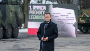Szczególnie zły dla Wojska Polskiego był rok 2011, kiedy to bardzo wiele jednostek na wschodzie naszego kraju zostało zwiniętych, rozformowanych. Na wschodzie naszego kraju – przypominam. Trzy lata po napaści rosyjskiej na Gruzję, która miała miejsce w 2008 roku. Moje środowisko polityczne przestrzegało przed tym. Świętej pamięci prezydent RP Lech Kaczyński w Gruzji mówił „dziś Gruzja, jutro Ukraina, potem państwa bałtyckie, później być może Polska”. Od 2015 roku konsekwentnie wzmacniamy Siły Zbrojne RP. Jest już 18. Dywizja Zmechanizowana, „Żelazna Dywizja”, która powstała w miejscu, w którym właśnie wcześniej do 2011 roku działała 1. Warszawska Dywizja Zmechanizowana im. Tadeusza Kościuszki. Staramy się, żeby nasycić wschodnią część naszego kraju Wojskiem Polskim. W związku z tym organizujemy i powołujemy do życia nowe jednostki wojskowe – poinformował Mariusz Błaszczak wicepremier, minister obrony narodowej.