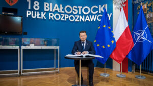 Nie ulega żadnej wątpliwości, że mamy do czynienia z próbą odbudowy imperium rosyjskiego. To jest imperium zła. Bez względu na to czy ono było białe, czy czerwone, czy teraz jest putinowskie. Zawsze niosło ze sobą zło. O czym przekonują się codziennie nasi sąsiedzi z Ukrainy. Bo przecież na Ukrainie trwa regularna wojna, to już jest pełnoskalowy konflikt. Ukraina została napadnięta przez Rosję. Naszym zadaniem, zadaniem władz polskich jest budowa silnego Wojska Polskiego. Tak, żeby agresor nie poważył się na zaatakowanie naszego kraju. Żeby tak było konsekwentnie od 2015 roku, kiedy to Prawo i Sprawiedliwość przejęło władzę, kiedy pan Andrzej Duda został prezydentem Rzeczpospolitej Polskiej, wzmacniamy polskie siły zbrojne, formujemy nowe jednostki wojskowe – często w miejscach, w których te jednostki zostały rozformowane w poprzednich latach – mówił w Białymstoku szef MON.