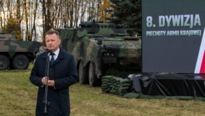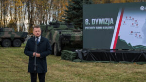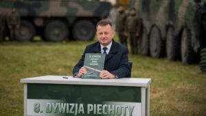 To bardzo ważna wiadomość w kontekście bezpieczeństwa naszej Ojczyzny, Polski. Tu w Nowym Mieście nad Pilicą powstanie dowództwo nowej dywizji zmechanizowanej. Dlaczego w Nowym Mieście nad Pilicą? Ze względu na analizy jakie zostały przeprowadzone w dowództwach wojskowych i Ministerstwie Obrony Narodowej – poinformował Mariusz Błaszczak, szef MON (Formowanie 18. Brygady Zmotoryzowanej w Poniatowej, Wojsko Polskie wraca do Czerwonego Boru, Nowy batalion w Kolnie rozpoczyna funkcjonowanie).