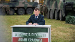 Jak mówiłem, analizy pokazały nam, że Nowe Miasto nad Pilicą jest najlepszym miejscem, w którym należy zlokalizować dowództwo nowej dywizji. Oddziały tej dywizji będą stacjonowały również w województwie świętokrzyskim, województwie łódzkim, ale także w północnej części województwa podkarpackiego. To będzie silna dywizja według tzw. modelu „czwórkowego” będzie organizowana. 4 brygady po 4 bataliony. Zdajemy sobie sprawę z zagrożeń. Rosja prowadzi agresywną politykę, napadła na Ukrainę. Widzimy, że konflikty są w różnych częściach świata. Na Bliskim Wschodzie kolejna wojna, napięcia w Azji. Jedyną skuteczną metodą odstraszenia agresora od tego, żeby nie napadł na Polskę jest budowanie silnego Wojska Polskiego – podkreślił szef MON.