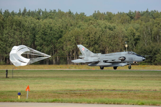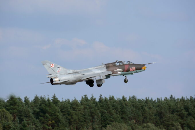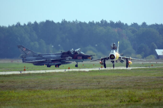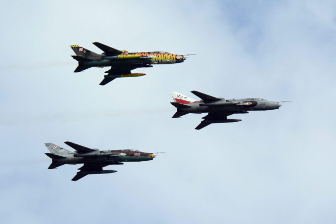 Pożegnalne loty wykonały 3 samoloty szkolno-bojowe Su-22UM3K oraz jeden bojowy Su-22M4 / Zdjęcia: Przemysław Gurgurewicz, MILMAG