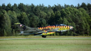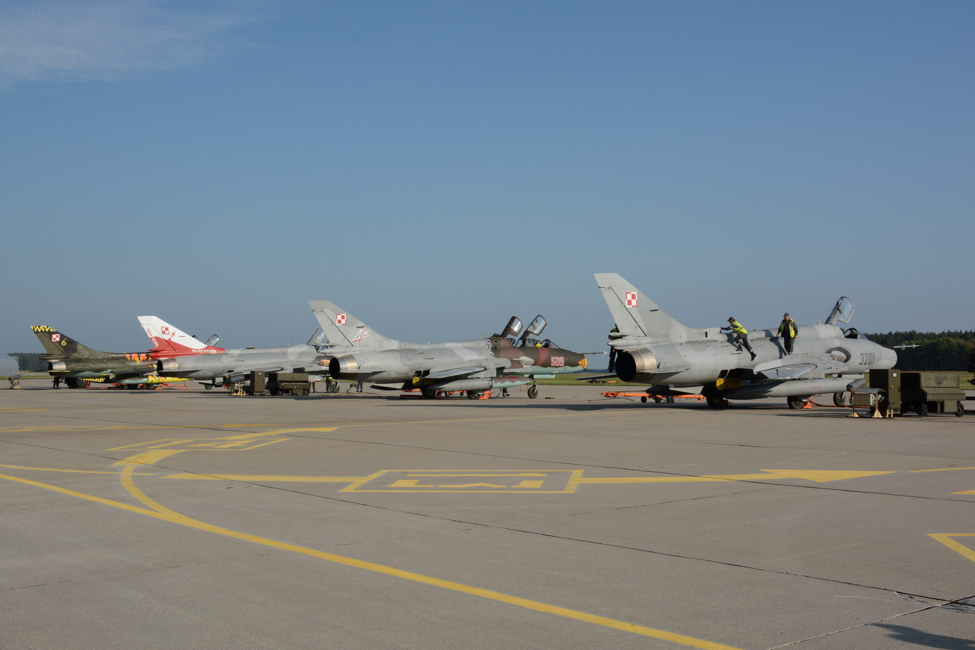 Podczas pożegnalnych wydarzeń można było podziwiać łącznie 4 samoloty w wersji bojowej Su-22M4 oraz 3 szkolno-bojowe Su-22UM3K. Te ostatnie o numerach: 308, 509 i 707 wykonały wspomniany przelot nad garnizonami, zaś spośród samolotów bojowych dwa (8309 i 3304) znalazły się na wystawie naziemnej, jeden (3201) także uczestniczył w lotach, zaś ostatni (3816) został wystawiony na loty jako samolot rezerwowy.