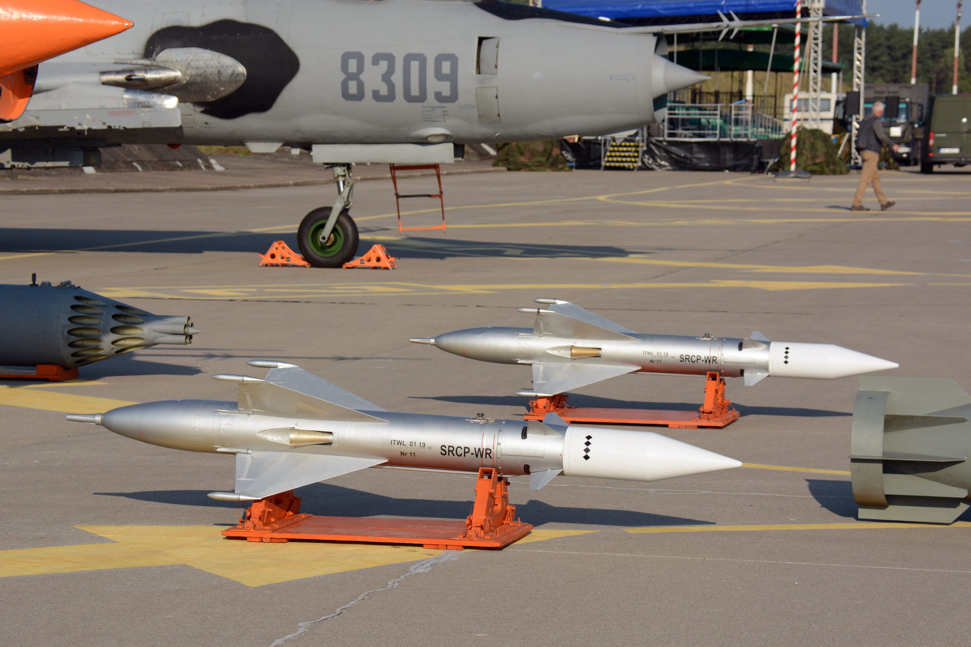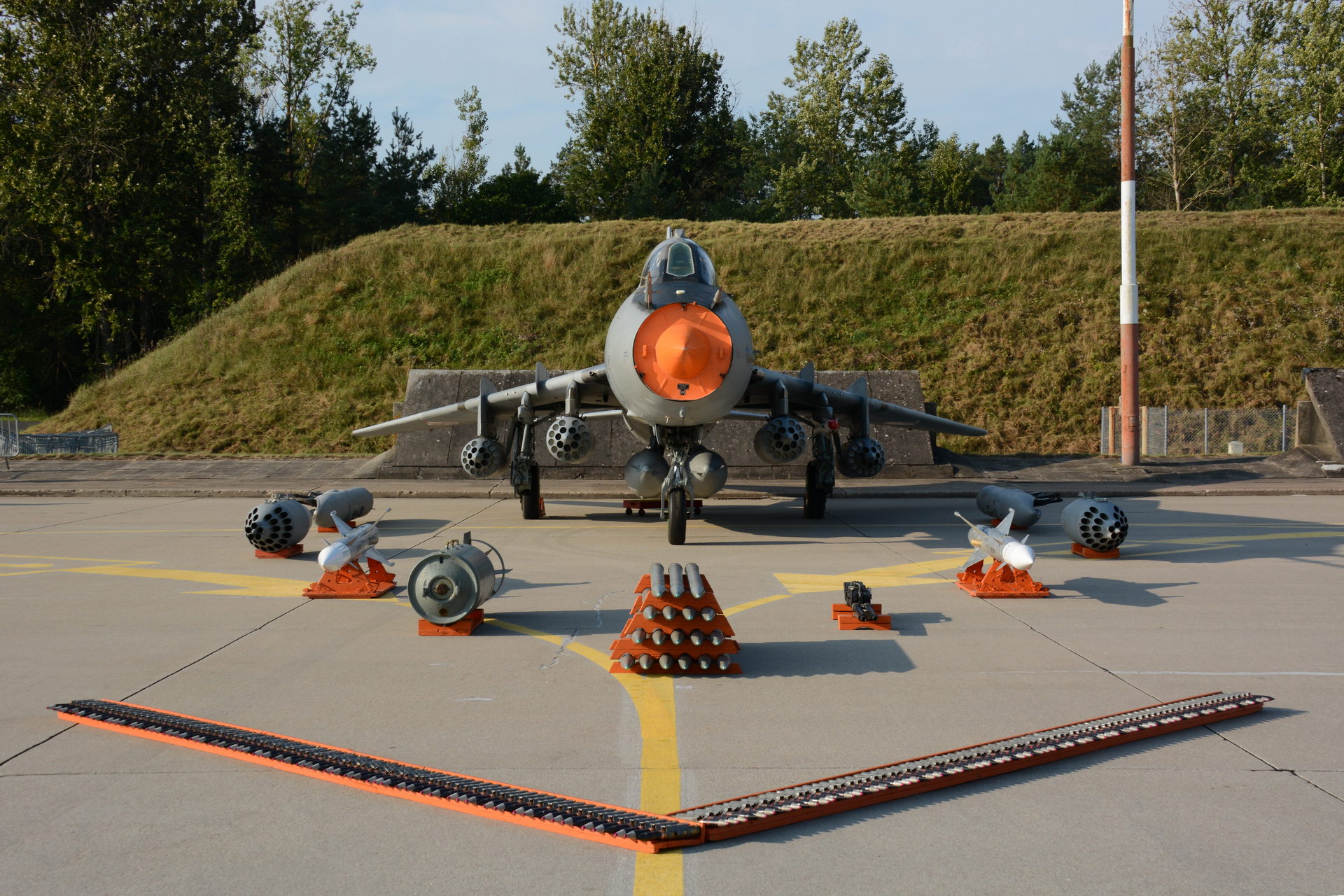 Na płycie postojowej przed samolotem zaprezentowano uzbrojenie używane przez polskie Su-22