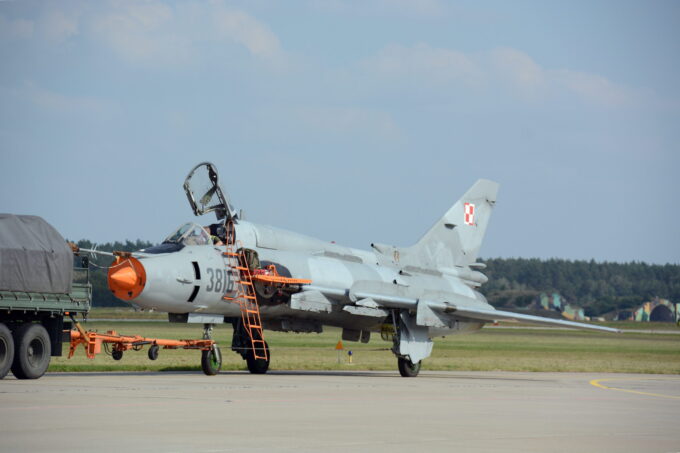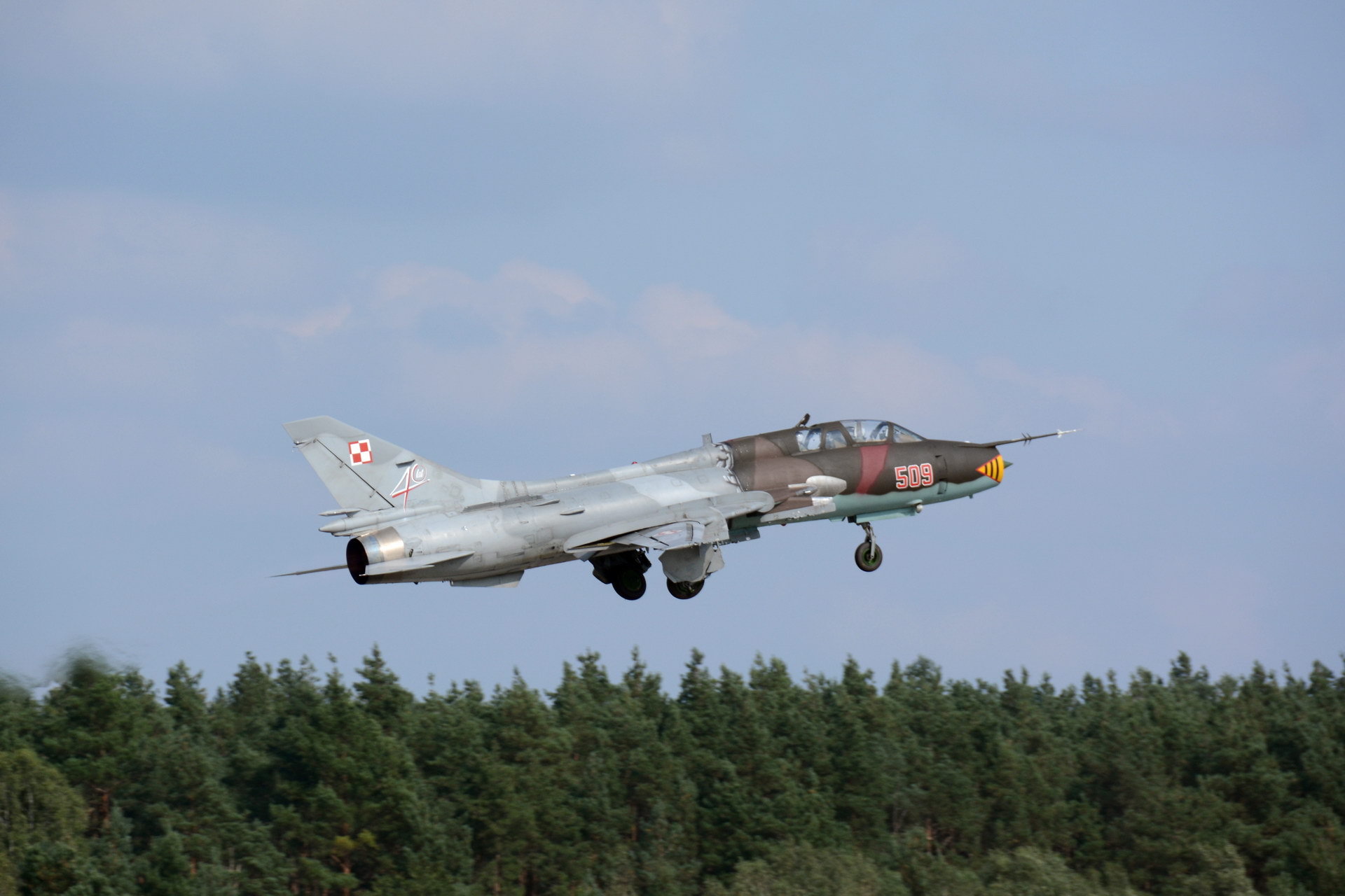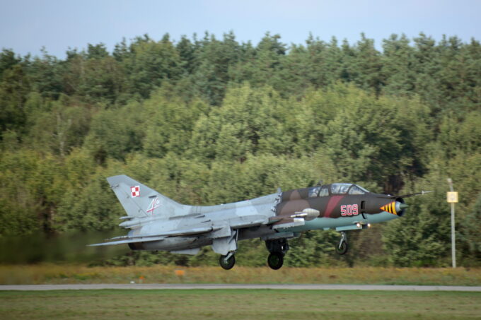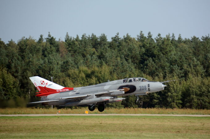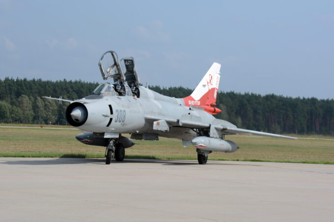 Łącznie Polska zakupiła 110 samolotów Su-22: 90 bojowych Su-22M4K oraz 20 szkolno-bojowych Su-22UM3K. Pierwsze egzemplarze trafiły do Polski nieco ponad 41 lat temu: 28 sierpnia 1984 roku zostały w stanie rozmontowanym dostarczone na lotnisko w Powidzu, gdzie były następnie montowane i oblatywane. Do jednostki bojowej – 6 Pułku Lotnictwa Myśliwsko-Bombowego w Pile pierwszy polski Su-22 z Powidza przebazowany został 13 listopada 1984 roku.