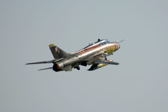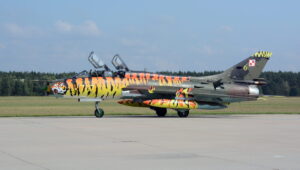 Jedyny Su-22M4, który latał podczas dnia medialnego w Mirosławcu, był wyposażony w zasobnik rozpoznania elektronicznego i fotograficznego KKR-1TE