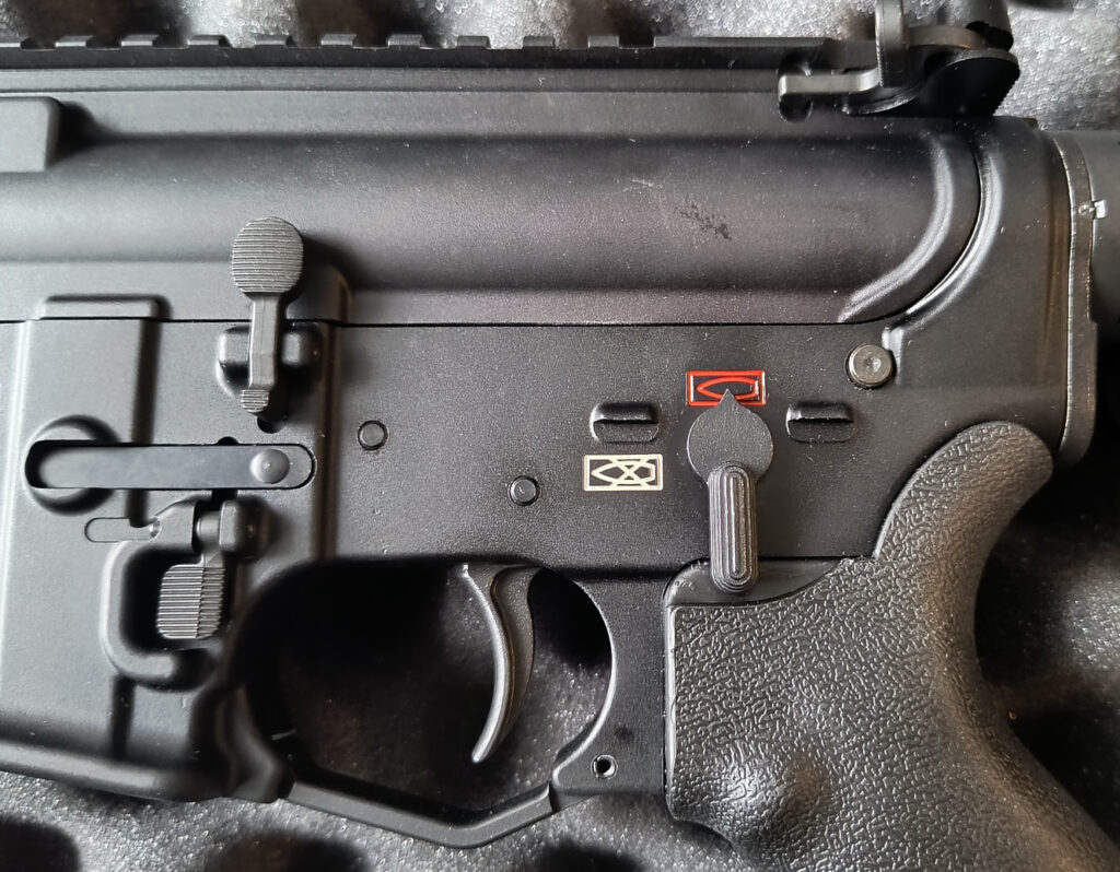 Kolejna część, cechująca karabinek kolejnymi autorskimi rozwiązaniami LMT, to komora spustowa systemu MARS. Jest to komora wyposażona w genialne obustronne manipulatory, jak obustronny zatrzask magazynka, zatrzask zamka, zrzut zamka oraz bezpiecznik. Operuje się nimi naprawdę dobrze, myślę, że dają niezłe możliwości do opracowania indywidualnego manuala na tak przygotowanej broni. Zarówno w przypadku osób prawo- jak i leworęcznych.