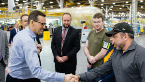 Co ciekawe, premier Mateusz Morawiecki zwiedził również linię montażu końcowego samolotów transportowych C-130J Super Hercules i tankowania powietrznego KC-130J Hercules. Ministerstwo Obrony Narodowej wstrzymało wprawdzie realizację programu o kryptonimie Drop i przejęło pięć używanych samolotów C-130H Hercules (dwa już dostarczono), to nie można wykluczyć, że spółka Lockheed Martin nadal ma nadzieję na pozytywne rozstrzygnięcie.