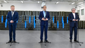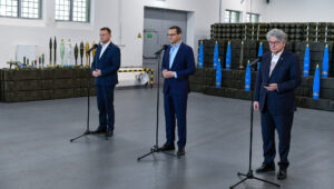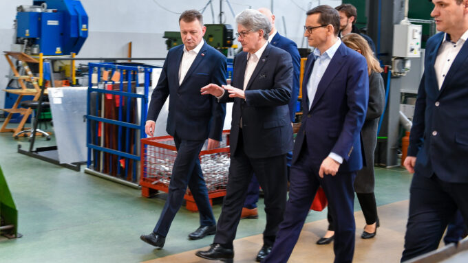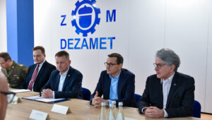 W poniedziałek, 27 marca br. premier Mateusz Morawiecki, wicepremier i minister obrony narodowej Mariusz Błaszczak spotkali się z komisarzem Unii Europejskiej ds. przemysłu i rynku wewnętrznego Thierrym Bretonem oraz pracownikami, wchodzących w skład Polskiej Grupy Zbrojeniowej (PGZ), Zakładów Metalowych (ZM) Dezamet w Nowej Dębie. Celem wizyty było zapoznanie się z możliwościami zwiększenia produkcji zakładów zbrojeniowych (Morawiecki: 800-900 mln EUR dla Polski za broń dla Ukrainy).