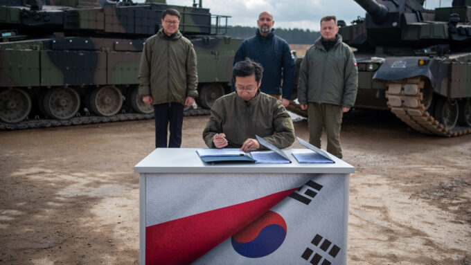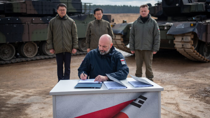 Jeszcze dziś zostanie także podpisany dokument, umowa, która stanowi o powołaniu konsorcjum między Polską Grupą Zbrojeniową i Hyundai Rotem. Konsorcjum zajmie się produkcją czołgu K2 w Polsce. Również za to serdecznie dziękuję. Kiedy, tak jak wspominał pan prezydent, rozmawialiśmy z polskimi żołnierzami pytaliśmy jak mogą scharakteryzować przewagi tego czołgu, czołgu K2, nad innymi czołgami przede wszystkim mówili o celności, funkcjonalności, o hydropneumatycznym zawieszeniu, które fantastycznie daje przewagę temu sprzętowi właśnie w takich warunkach geograficznych. (…) To jest bardzo dobry sprzęt. To jest sprzęt w rękach świetnie przeszkolonych polskich żołnierzy. Chciałbym to bardzo mocno podkreślić – zaznaczył wicepremier Mariusz Błaszczak (Polska Grupa Zbrojeniowa i Hyundai Rotem Company utworzyły konsorcjum czołgowe).