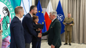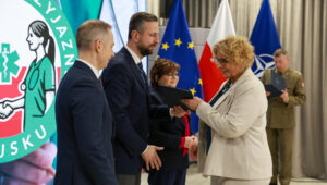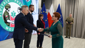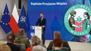 Wojna na Ukrainie zmieniła medycynę pola walki. My to implementujemy dzisiaj do polskiej służby zdrowia. Do naszych szpitali wojskowych, ale nie będą szpitale wojskowe w stanie tego obsłużyć, gdyby nie będzie współpracy z Ministerstwem Zdrowia. Współpracy z podmiotami powiatowymi i wojewódzkimi, wysokospecjalistycznymi, ale też będącymi blisko jednostek wojskowych. (…) Bez silnej opieki samorządowej, bez tego silnego partycypowania i w utrzymaniu, ale też w inwestycji. Dzisiaj bardzo wiele środków inwestycyjnych z Unii Europejskiej przechodzi przez regionalne programy operacyjne i idzie właśnie na opiekę zdrowotną, na budowanie opieki długoterminowej czy na inwestycje w szpitale. Samorząd tutaj, tak jak podczas pandemii, w czasie kiedy jest zagrożenie, bierze odpowiedzialność również za budowę odporności zdrowotnej i przygotowanie na najtrudniejsze czasy. Dziękuję całej Wojskowej Służby Zdrowia za to, że z otwartością przyjmuje jednostki cywilne i budujemy wielką silną armię i zdolności do opieki medycznej nad wszystkimi pacjentami, a dzisiaj szczególnie nad żołnierzami Wojska Polskiego – mówił szef MON.