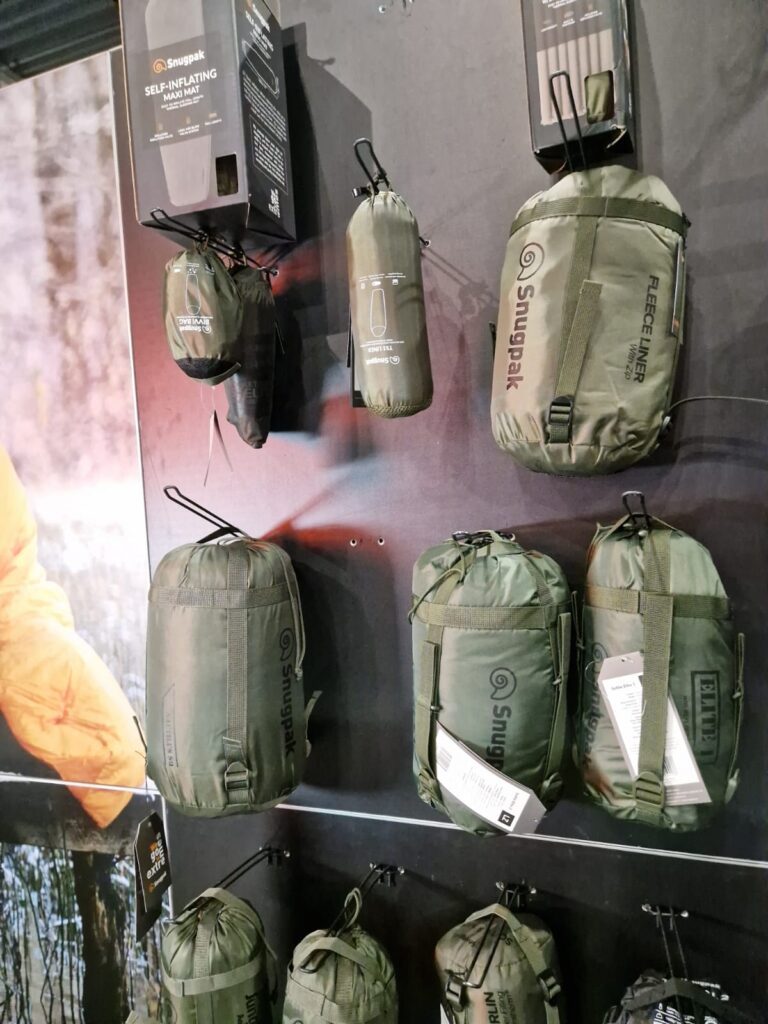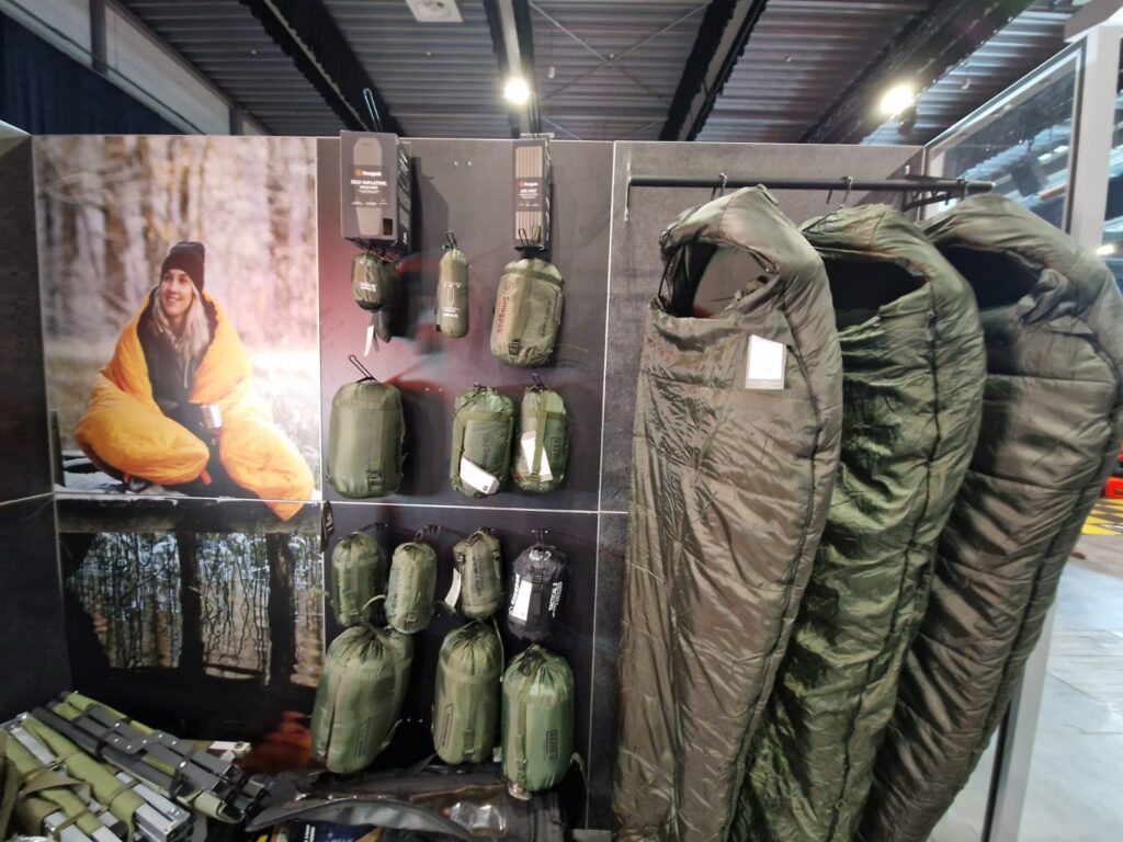 Obok zaprezentowano wybrane pozycje z oferty Snugpak. Specjalnością brytyjskiego producenta są kurtki termoizolacyjne oraz śpiwory – te drugie znalazły się na stoisku wraz z wybranymi akcesoriami pokroju zwiększających komfort wkładek oraz mat.