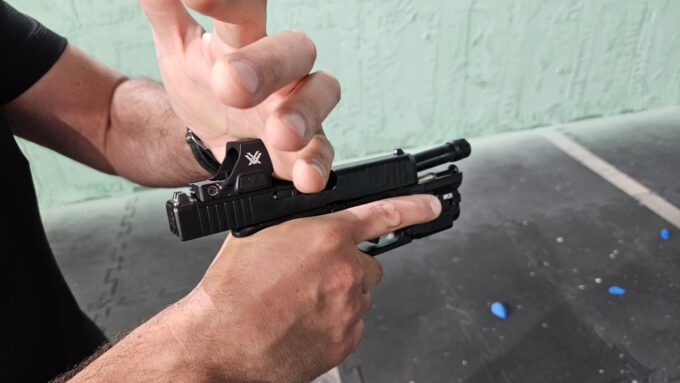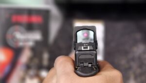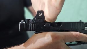 Strzelanie z kolimatorem Vortex Defender-ST jest bardzo przyjemne. Pomaga w tym jego rozmiar, szerokie pole widzenia, jakie oferuje, kształt soczewki i bardzo wyraźna kropka. Dość szybko przyzwyczaiłem się do tego systemu i używałem dosyć intuicyjnie podczas testów.