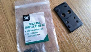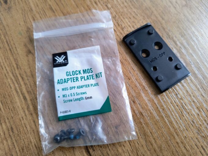 Płytka do montażu Defendera na zamku Glocka ma oznaczenie MOS–DPP, co mówi, że użyty tu standard to Delta Point Pro. Rzecz bardzo uniwersalna również dzięki wspomnianej wcześniej mnogości śrubek.