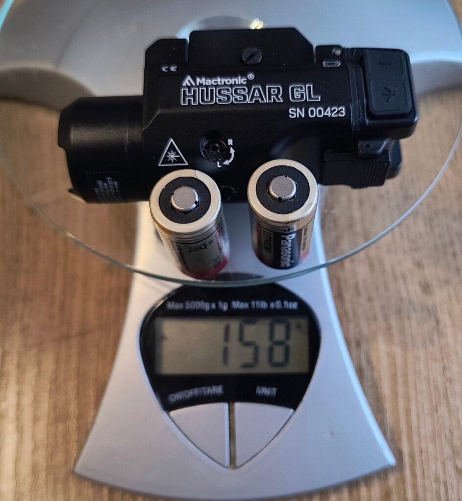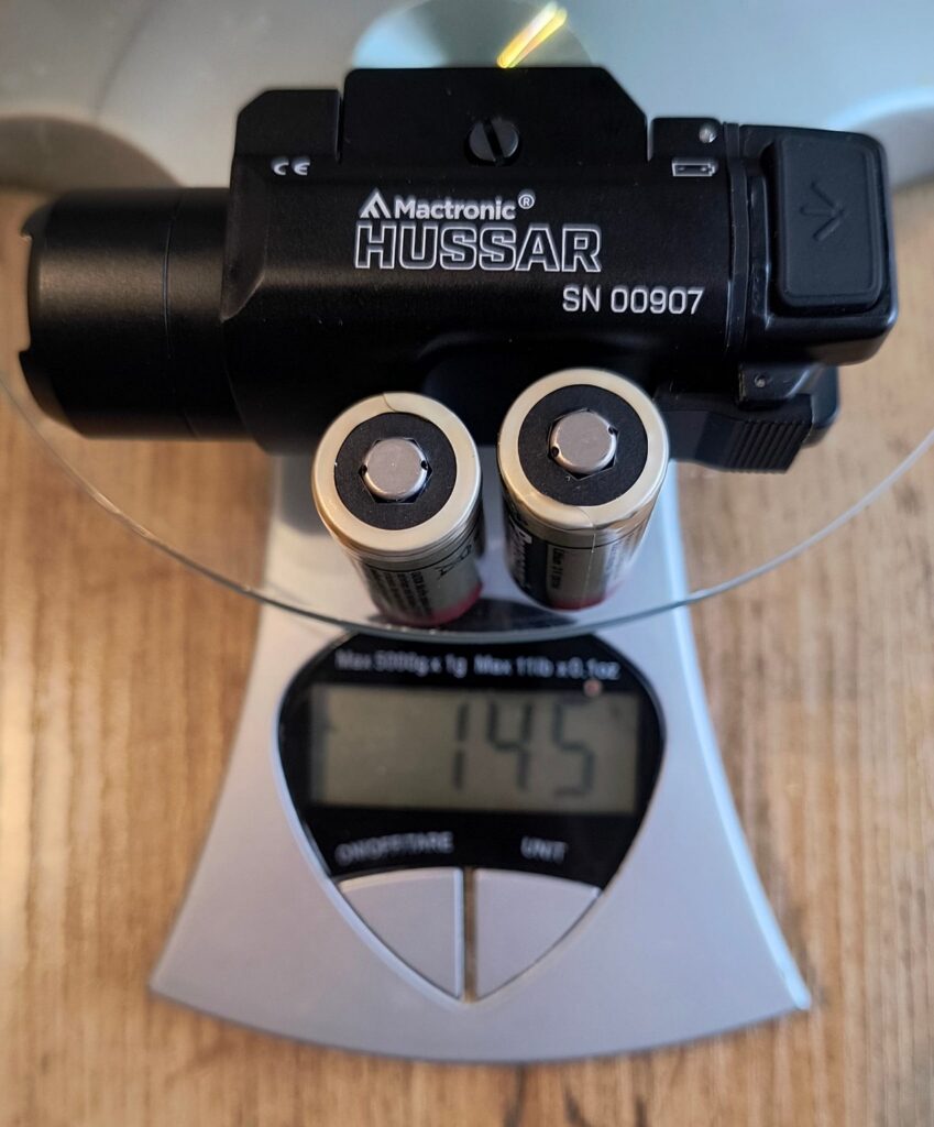 Mamy tu opis zestawu, informacje, że możemy zasilać latarki ogniwem CR123 lub litowo-jonowymi 16340 3,6V. Z ciekawości zważyłem obie razem z zasilaniem i bez. Potem się doczytałem na opakowaniu, że wyszło tyle samo 🙂