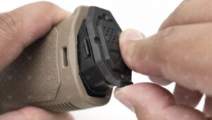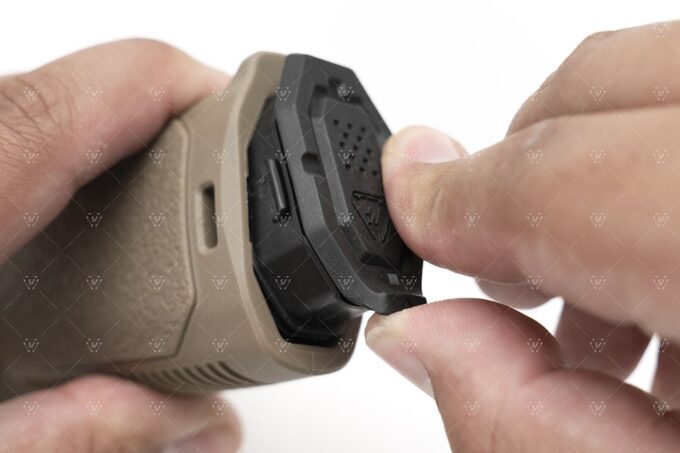 MAPG zawiera wkładkę narzędziową Strike Pistol Grip Plug, która umożliwia przechowywać wewnątrz chwytu klucz imbusowy, a także inne narzędzia lub baterię CR2032 (bez zapewniania wodoodporności schowku).