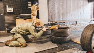 MRTM.22 to zawody PRS. Cechuje je przede wszystkim używany kaliber, a mianowicie 22LR. Oczywiście dystanse też są inne niż (w nazwijmy to roboczo DUŻYM PRS ). Ich niezaprzeczalnym plusem jest niższy “próg wejścia” w zabawę. Broń, optykę i osprzęt można kupić już w całkiem rozsądnych pieniądzach, a koszt amunicji jest nie porównywalny z nabojami centralnego zapłonu. Poza kalibrem i dystansami cała reszta nie różni się od centralno-zapłonowych zawodów. Cele na torach są odpowiednio pomniejszone, wymuszone postawy i limity czasowe na realizację zadań są identyczne.