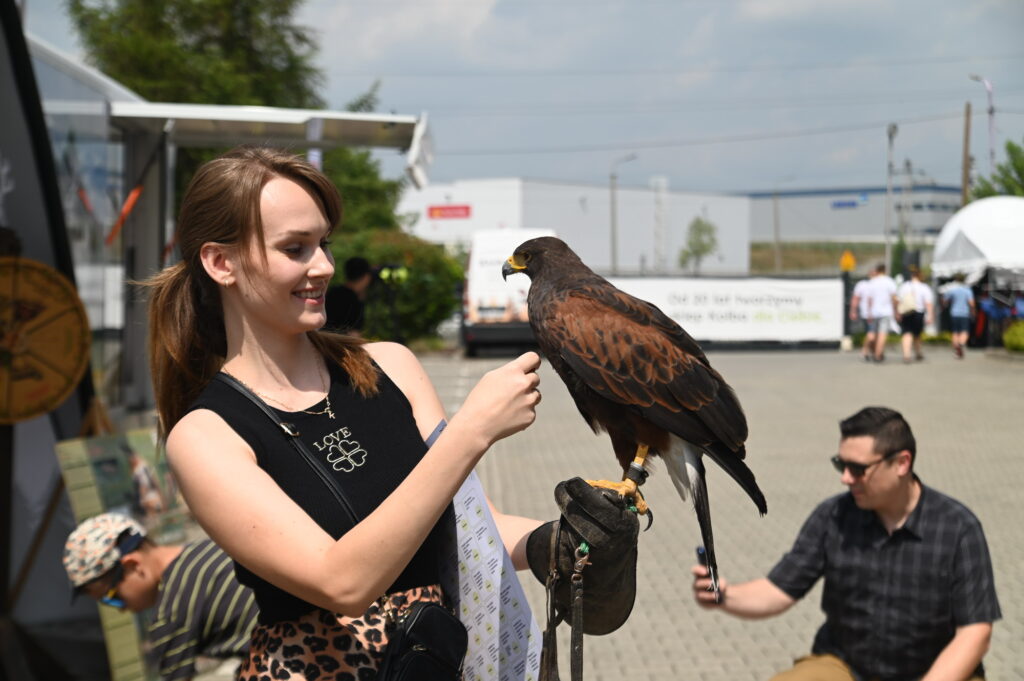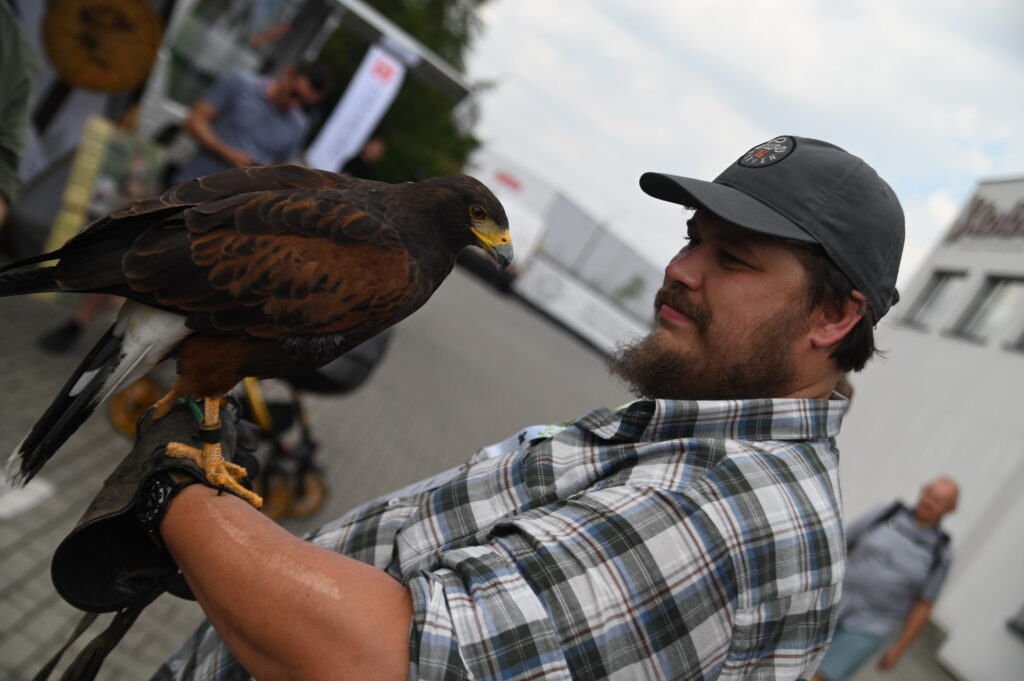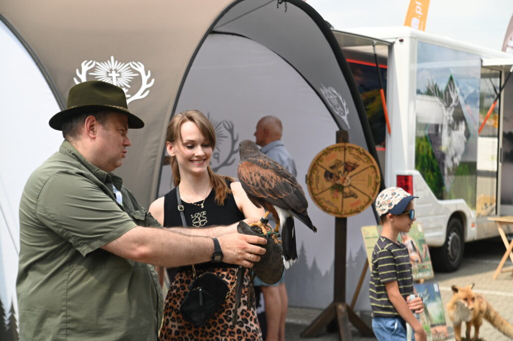 Jedno ze stanowisk PZŁ poświęcono sokolnictwu, gdzie nadarzyła się niecodzienna okazja na spotkanie z majestatycznym ptakiem łownym.
