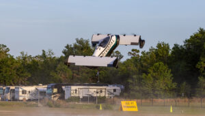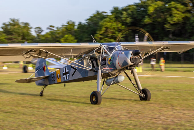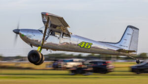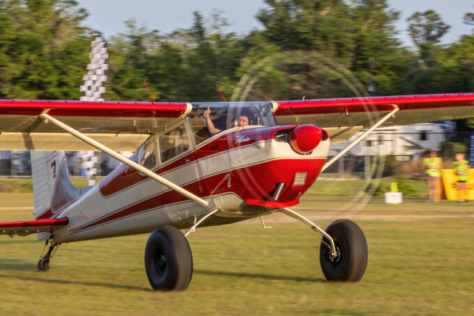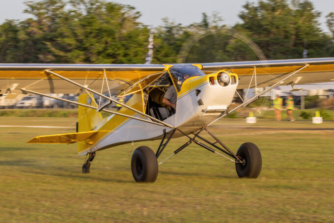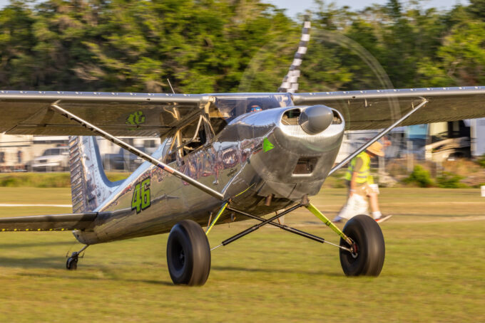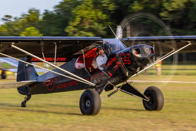 Wieczorem, na trawiastej części lotniska udałem się jeszcze, żeby zobaczyć zawody samolotów STOL (Short Take Off and Landing), czyli takich maszyn jak Piper Cub cz Aviat Husky. Tutaj też miałem pierwszy raz w życiu zobaczyć urządzenie nazwane PIVOTAL, czyli coś jak dron, napędzany 8 silnikami, ale w konstrukcji bardziej przypominającej Ospreya, niż drona. Urządzenie startuje pionowo do góry, a później skrzydła z silnikami zmieniają swoją geometrię i pozwalają mu lecieć do przodu. Niewątpliwie przedziwna ale ciekawa maszyna.