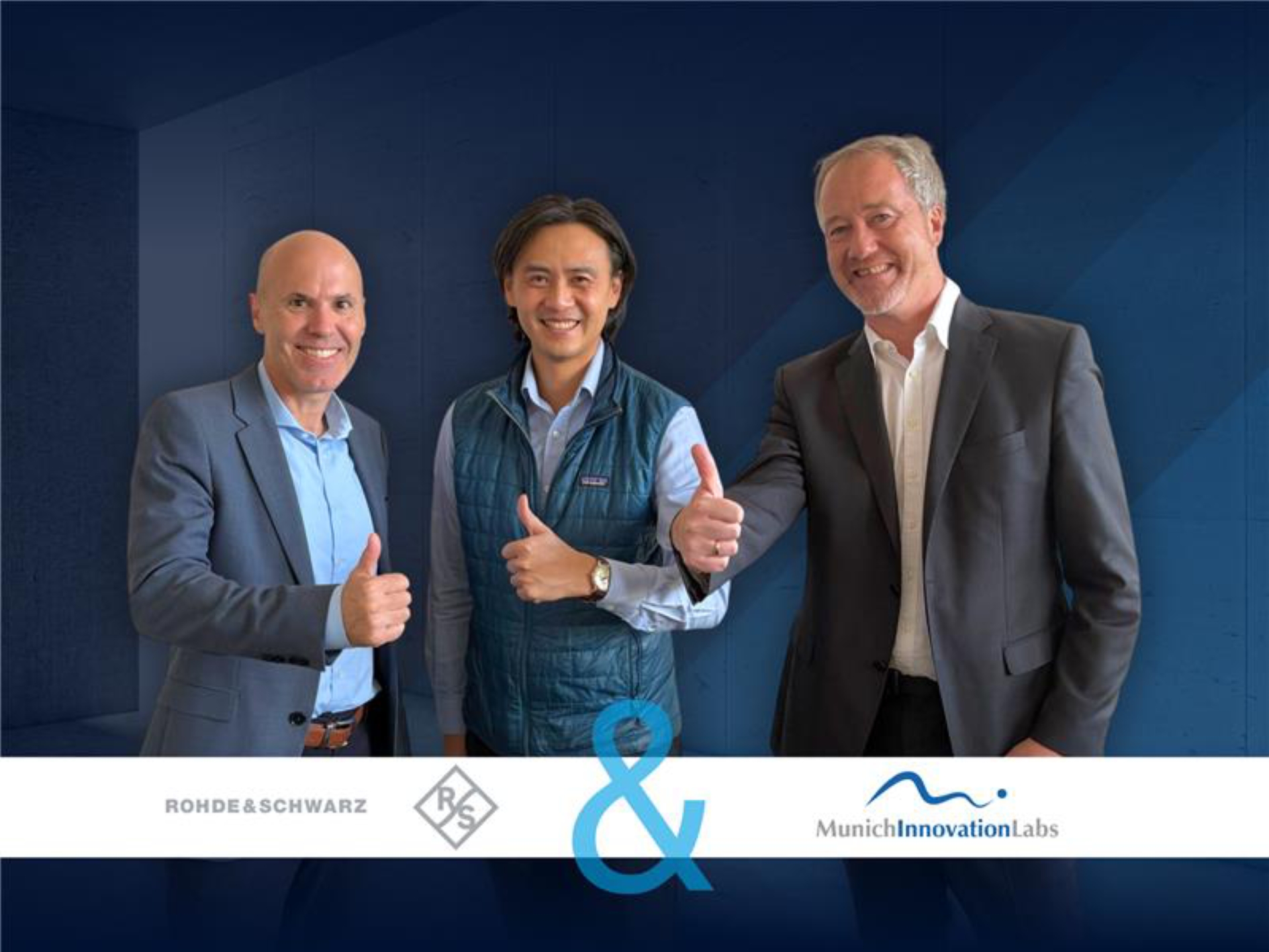 Dr Alexander Orellano, wiceprezes wykonawczy ds. systemów technologicznych w Rohde & Schwarz (po lewej), Sebastian Richter, wiceprezes ds. monitorowania i analiz w Rohde & Schwarz (po prawej) oraz współzałożyciel Munich Innovation Labs GmbH, Stefan Taing (w środku), wspólnie patrzą w przyszłość / Zdjęcie: Rohde & Schwarz