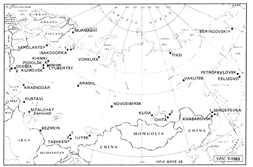 Rozmieszczenie systemów antenowych projektu Krug / Mapa: CIA