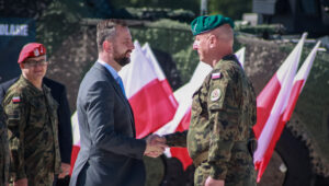 Wojna hybrydowa osiągnęła swój najwyższy poziom zaangażowania przeciwko państwu polskiemu. Ataki na granicę, akty sabotażu i dywersji. Cyberprzestrzeń każdego dnia jest przedmiotem różnych działań operacyjnych. W każdej domenie i przestrzeni odbywa się atak na państwo polskie. Wojna hybrydowa to kombinacja różnego rodzaju działań, które nie zawsze wprost świadczą o celach, które zamierza osiągnąć nasz adwersarz. On po prostu sprytnymi sposobami chce zniszczyć naszego ducha, przełamać granicę i zniszczyć systemy bezpieczeństwa. Ale dzięki wam, dzięki żołnierzom Wojska Polskiego nasza Ojczyzna jest bezpieczna. Dzięki wam jesteśmy bezpieczni i na wstępie chciałbym podziękować wszystkim żołnierzom i funkcjonariuszom, bo to jest wspólna misja – podkreślił wicepremier.