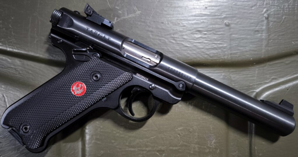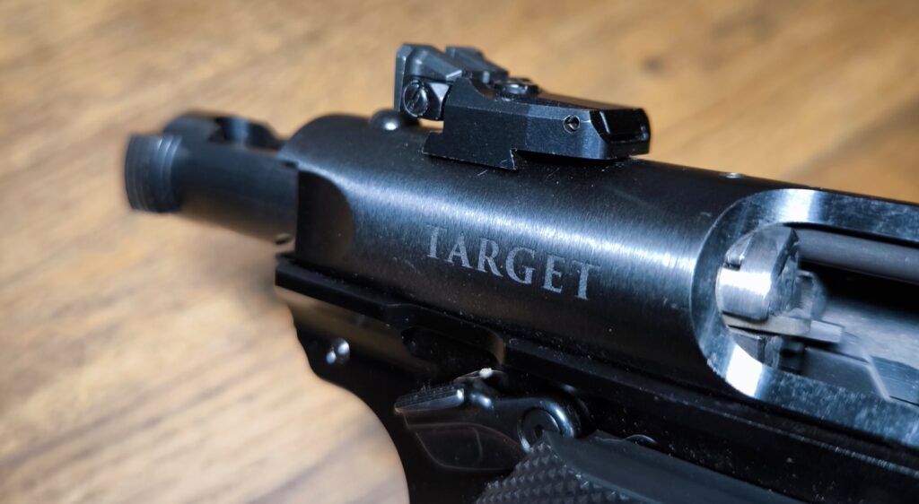 Na początku mojej przygody ze strzelectwem byłem dumnym posiadaczem Rugera Mk III dlatego bardzo, ale to bardzo cieszyłem się z okazji postrzelania z najnowszej wersji tej broni. Z zadowoleniem przyznaję, że niewiele się zmieniło od tych prawie 10 lat, kiedy miałem po raz ostatni do czynienia z Mk III. Tamten pistolet – podobnie jak obecnie – był wersją usportowioną, czyli Target. Wyposażony w regulowane przyrządy celownicze oraz ciężką lufę.