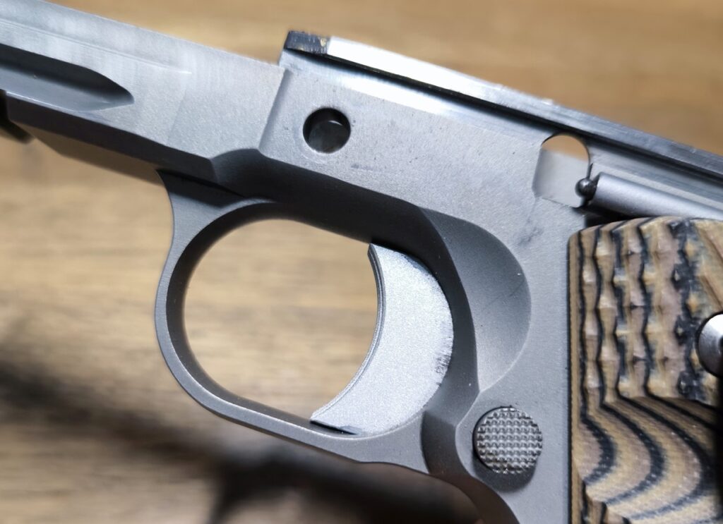 Frezowania ułatwiające manipulacje zamkiem znajdują się w 1911-tce zarówno z tyłu jak i tuż za wylotem lufy. Wycięto je głęboko, a krawędzie są dość ostre, więc spełnią swoje zadanie.