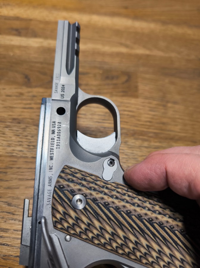 Ale po kolei. Savage 1911 to klon pełnowymiarowego Colta 1911. Jego lufę o długości 127 mm (5 cali) wykonano z nierdzewnej stali i zwieńczono poprawiającą podobno celność koroną o kącie 11 stopni.