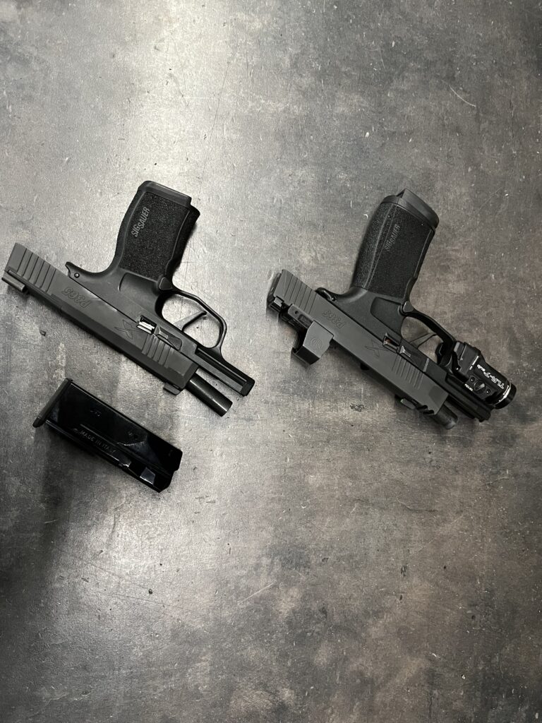 Kolejną, choć już mniej istotną różnicą w opisywanych modelach, jest sposób montowania przyrządów celowniczych. Oba modele wyposażono w fabrycznie montowane muszki i szczerbinki Xray. W mojej ocenie są to najlepsze ze standardowych przyrządów celowniczych na całym rynku. Trytowe wkładki oraz muszka z dodatkowym zielonym wypełnieniem to absolutny sztos. Przyrządy są szybkie i wyraźne. Różnica w nich polega na tym, że SIG chyba posłuchał użytkowników, dzięki czemu w nowym modelu szczerbinka nie jest zintegrowana z płytką zasłaniającą gniazdo montażu kolimatora.