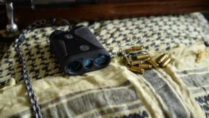 SIG Sauer Electro Optics to oddział niemieckiego producenta broni strzeleckiej, zajmujący się projektowaniem i wytwarzaniem wszelkiego rodzaju optyki i optoelektroniki. W ofercie znajdziemy lunety, lunety celownicze, celowniki kolimatorowe, laserowe wskaźniki celu, lornetki, latarki i jak widać, dalmierze laserowe.