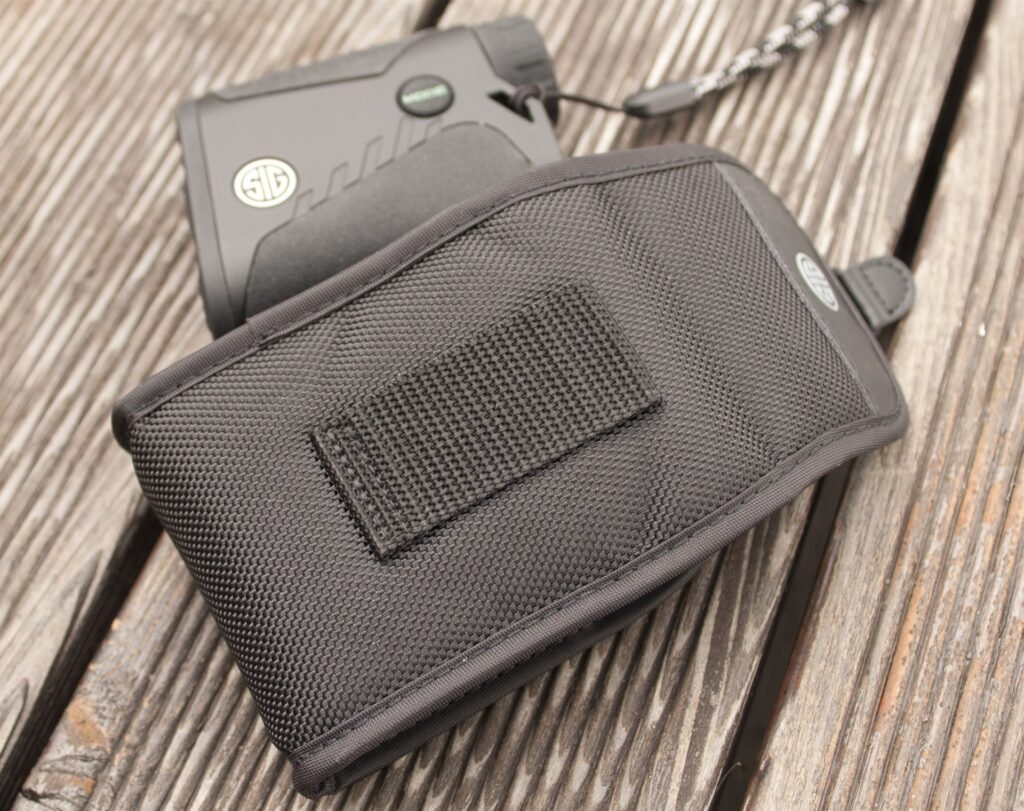 W odróżnieniu od innych pokrowców do przenoszenia strzeleckich akcesoriów ten, który dostarcza SIG Sauer zamykany jest plastikowym haczykiem i elastyczną pętelką. Dzięki temu jego obsługa jest niemal bezgłośna, co dla myśliwego może mieć do pierwszorzędne znaczenie.