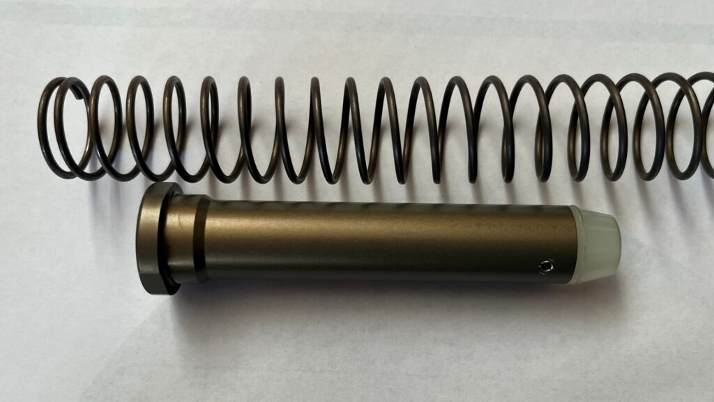 Ciężki buffer (tłumaczyć można jako „zderzak”, ale dla łatwiejszego zrozumienia artykułu pozostawione zostało oryginalne nazewnictwo – przyp.red.) typu A5H2, osadzony w dłuższej tulei (buffer tube) pozwala na zastosowanie dłuższej niż standardowa sprężyny powrotnej. To rozwiązanie ma na celu stłumienie odczuwalnego odrzutu poprzez masę buffera, podczas gdy wydłużona sprężyna kumuluje energię i oddaje ją płynnie – cały mechanizm pracuje harmonijnie. Masa buffera oraz długość (siła) sprężyny została dobrana tak, aby całość działała niezawodnie przy wykorzystaniu różnych urządzeń wylotowych.