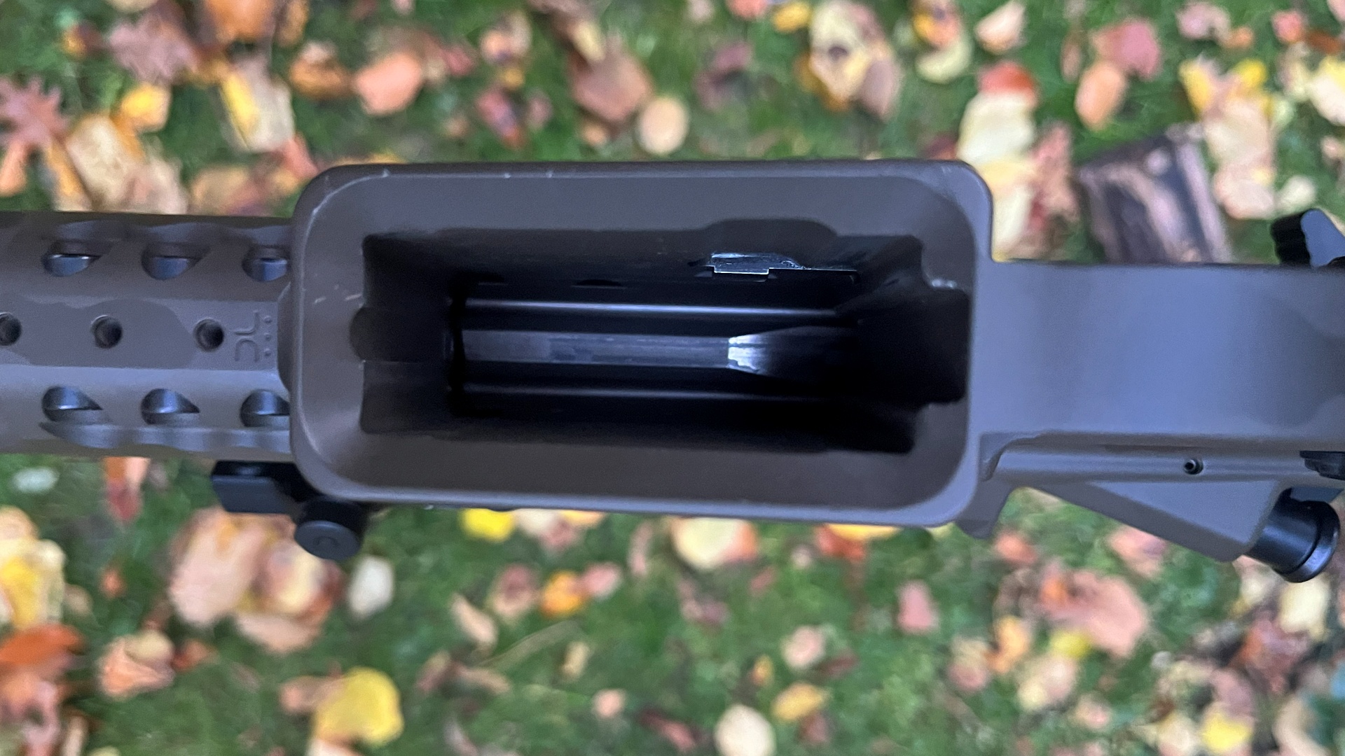 Ponieważ karabinek już po wyjęciu z pudełka jest przystosowany do pracy z tłumikiem, producent zadbał również o rozwiązania zwiększające komfort użytkowania i w tym przypadku. Aby zminimalizować efekt „dmuchania gazami prochowymi w twarz”, zastosowano obustronną dźwignię przeładowania o ciasnym, precyzyjnym spasowaniu, która mimo to pracuje bardzo płynnie. Na jej końcu znajduje się niewielka stopka odprowadzająca gazy na boki, skutecznie ograniczająca ten nieprzyjemny efekt.