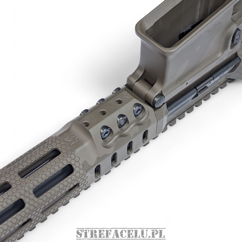 Istotne są zmiany wprowadzone w łożu oraz komorze zamkowej, które stanowią oryginalny projekt SOLGW. Łoże, osadzone w sposób czyniący lufę samonośną, cechuje się systemem montażowym M-LOK na niemalże całej swojej powierzchni, poza górą, zarezerwowaną dla nieprzerwanego odcinka szyny Picatinny. Po środku szyny – zarówno na łożu, jak i komorze – utworzono kanał, który ułatwia organizację okablowania akcesoriów (np. tych prowadzących z latarek, wskaźników i innych urządzeń do wielofunkcyjnych włączników). Kolejną rzeczą wyróżniającą łoże jest tworzona laserowo przyczepna powierzchnia, ułatwiające pewne chwycenie. To, co najważniejsze, to rozwiązania zastosowane w rejonie mocowania łoża z komorą zamkową. Łoże mocowane jest na tytanowej nakrętce (barrel nut) o specjalnej powłoce, zwiększającej odprowadzanie ciepła z rozgrzanej lufy. W odprowadzaniu pomagać mają również otwory chłodzące łoża, znajdujące się po bokach oraz u góry. Mocowanie odbywa się za pośrednictwem śrub ze specjalnymi nakrętkami u spodu łoża, powodującymi dokładne dociśnięcie go do komory. Sztywność połączenia zapewniać mają także dwa kolejne rozwiązania: