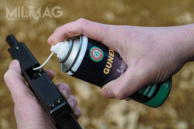Gdy już zabierzemy się za serwis uzbrojenia z użyciem środków chemicznych, pamiętajmy o regule do sucha. Utopiona w oleju broń palna wcale nie oznacza lepiej zakonserwowana. Na tłustej, grubej powłoce oleju osadzają się nieczystości, które skutkują zwiększeniem tarcia podczas oddawania strzału, a co za tym idzie wpływają na jego celność i kondycję lufy. Olej czy smar powinien tworzyć jedynie cieniutką warstwę (tzw. film) chroniący stal przed korozją. A takich elementów jak czoło zamka, czy mechanizm spustowo-uderzeniowy w ogóle nie powinniśmy traktować tłuszczami, ponieważ w niskich temperaturach smar robi się gęsty, co może utrudnić prawidłowe zwalnianie iglicy. Wyjątek stanowią jedynie produkty z dodatkami, które umożliwiają ich użycie w szerokim zakresie temperatur.