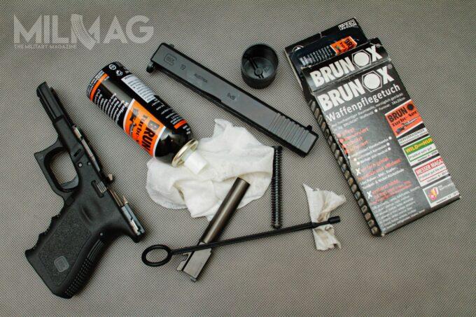 Zanim jednak weźmiemy się za kosmetykę, upewnijmy się, że broń jest rozładowana, a jej temperatura zbliżona do temperatury otoczenia. To pierwsze ze względu na nasze własne bezpieczeństwo, a drugie ze względu na bezpieczeństwo broni. Mogące pojawić się przy różnicy temperatur zjawisko kondensacji pary wodnej, zniweczy efekty starań i tylko wspomoże proces rdzewienia.