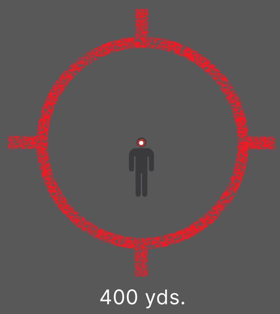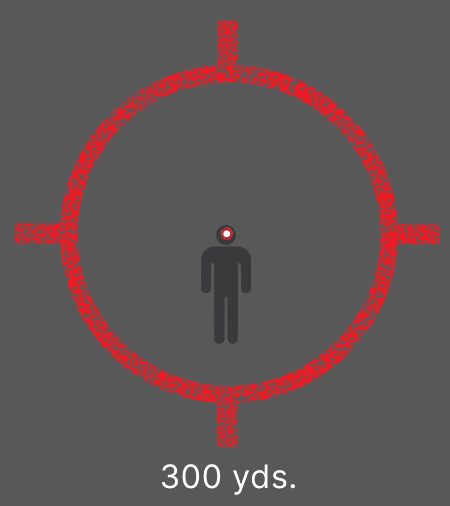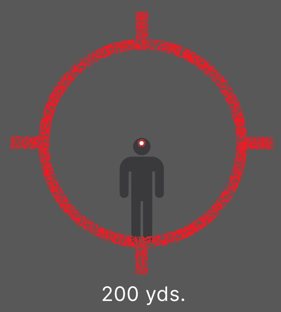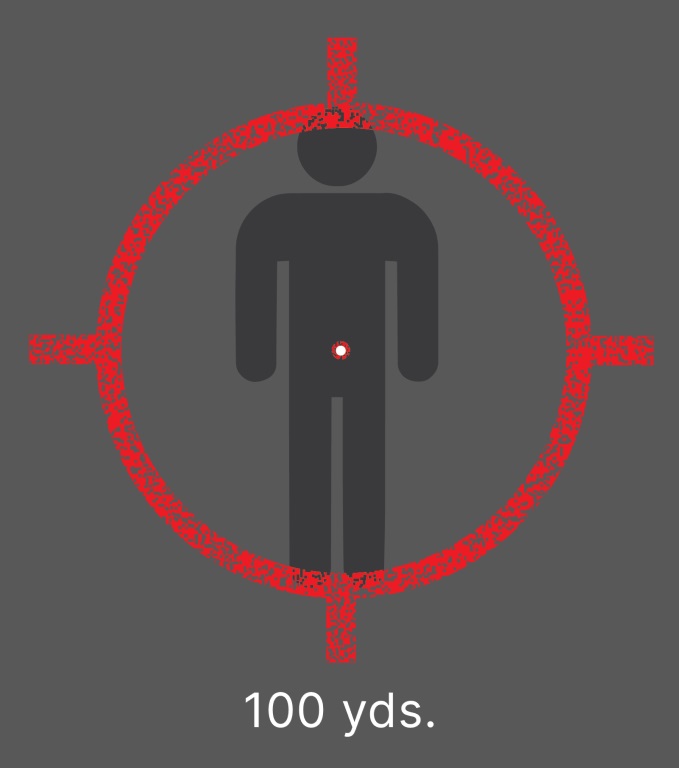 Poniższe grafiki pokazują jak wykorzystać celownik do określenia odległości korzystając ze znaku celowniczego EOTech.