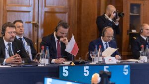 Pokój sam z siebie się nie obroni, dlatego potrzebuje naszej siły. Siły naszej piątki, siły Sojuszu Północnoatlantyckiego i siły Unii Europejskiej. Zacznę od strategicznej rzeczy, która jest w stanie zagwarantować bezpieczeństwo transatlantyckie. To jest wsparcie, dalsze wsparcie dla Ukrainy, to jest silna, niepodległa i demokratyczna Ukraina, która patrzy w stronę Zachodu, a nigdy nie będzie zwracać swojego wzroku w stronę Moskwy – mówił wicepremier.