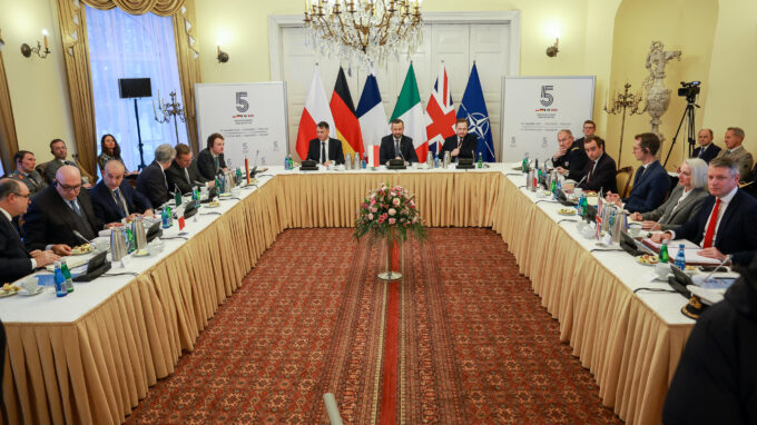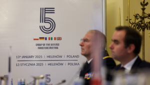 W poniedziałek, 13 stycznia 2025, w Ośrodku Reprezentacyjnym Ministerstwa Obrony Narodowej w Helenowie pod Warszawą, wicepremier i minister obrony narodowej Władysław Kosiniak-Kamysz, spotkał się z ministrami obrony: Niemiec, Wielkiej Brytanii, Francji i Włoch. W spotkaniu, przeprowadzonym w formacie Grupy E5, uczestniczył również minister obrony Ukrainy, który dołączył za pośrednictwem wideokonferencji (VTC).
