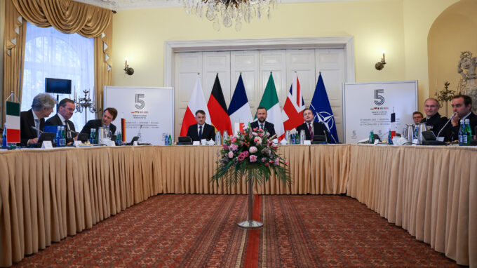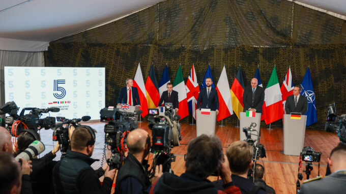 Spotkanie Grupy E5 odbyło się w gronie państw NATO przeznaczających największe środki na obronność. Jest to kontynuacja dialogu zapoczątkowanego podczas poprzedniego spotkania w listopadzie ubiegłego roku w Berlinie (Polska dołączyła do inicjatywy europejskich pocisków dalekiego zasięgu, Polsko-niemieckie konsultacje międzyrządowe, Intensyfikacja współpracy w ramach Trójkąta Weimarskiego).
